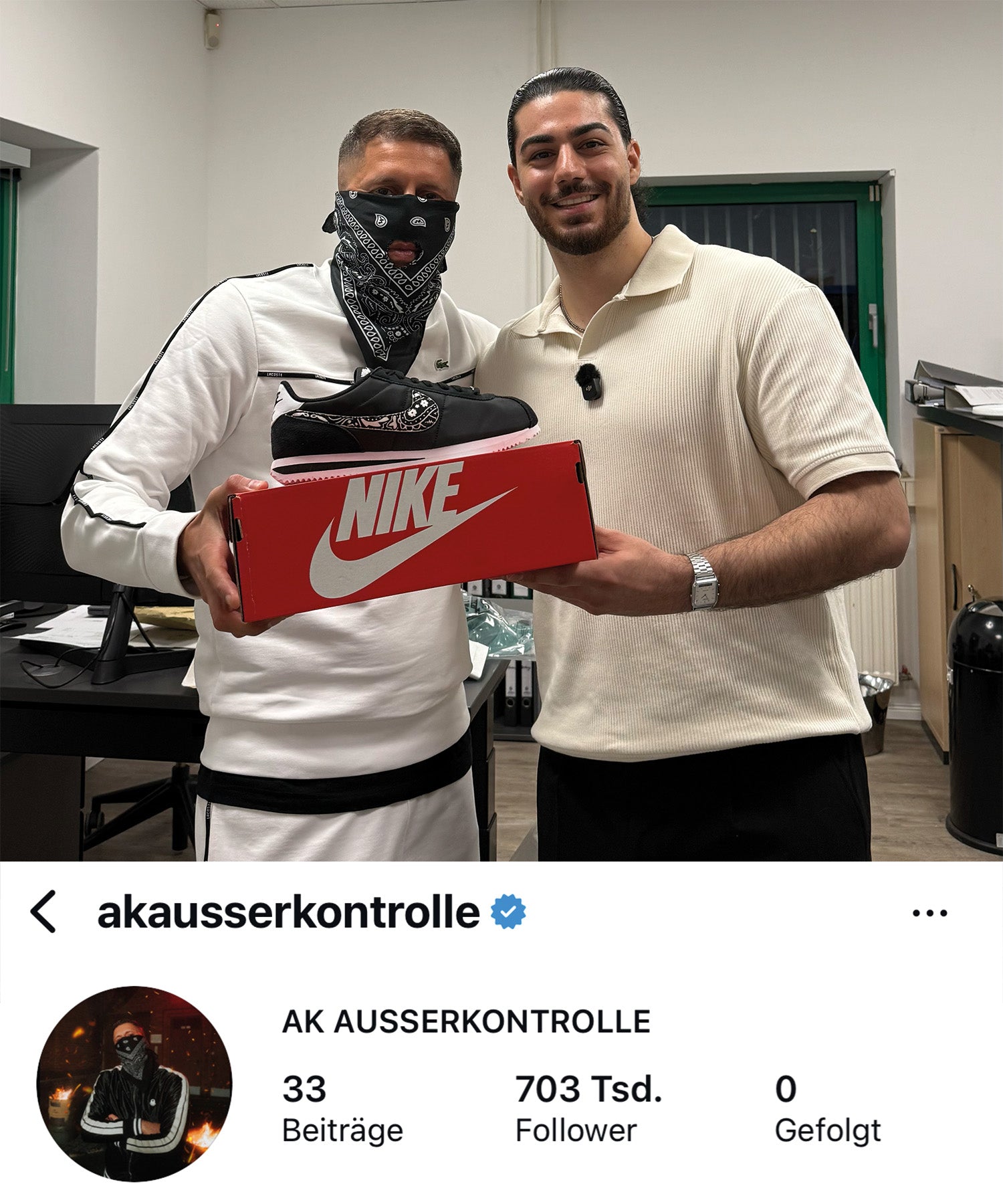 Custom Nike Cortez für AK Ausserkontrolle – Berliner Rapper mit Millionenstreams, bekannt für seine maskierte Erscheinung und seinen unverkennbaren Sound.